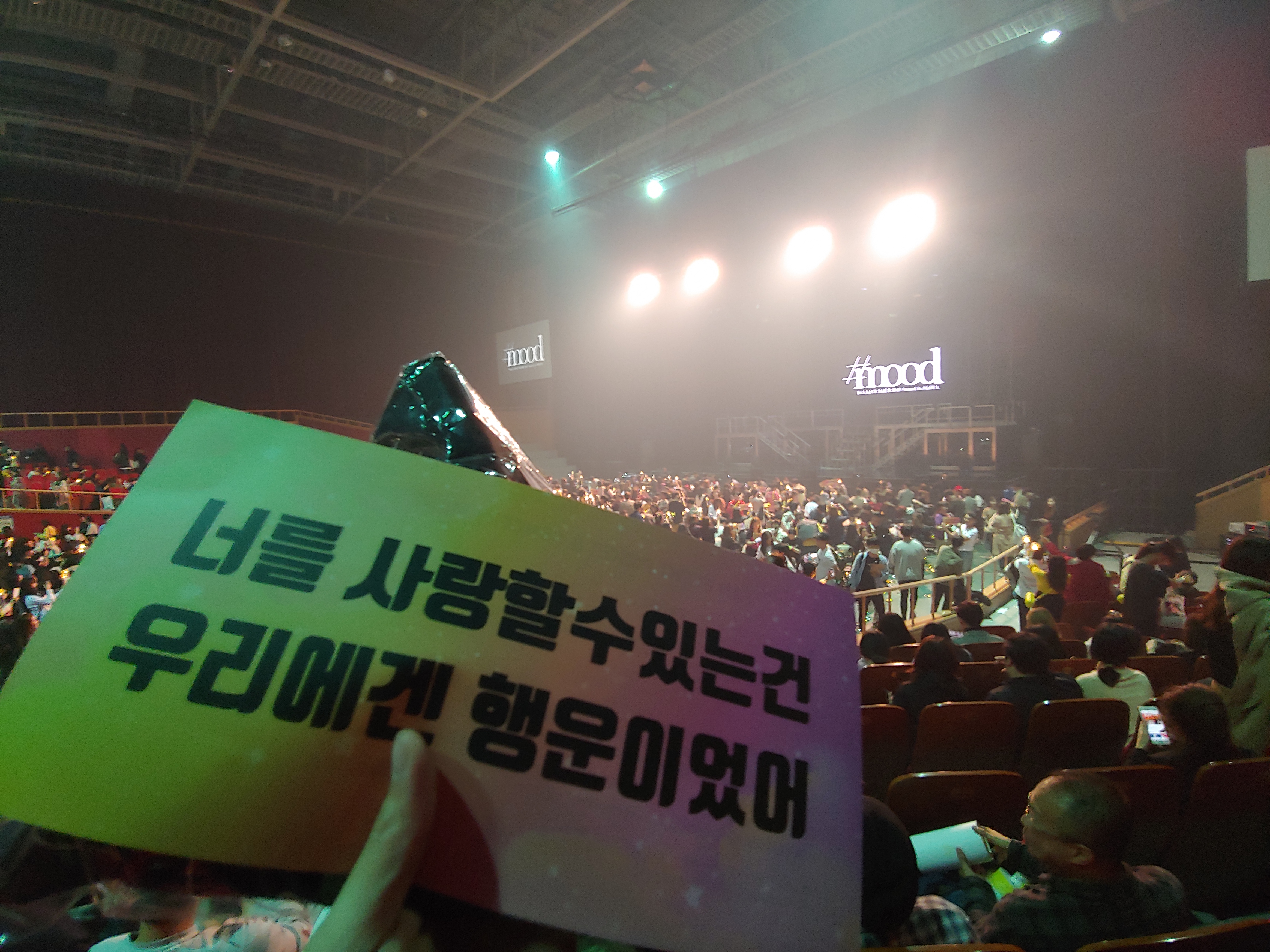현수막에서 그냥 빛이 나는 느낌, 눈이 부셔요 그냥. 사실 무드는 일본 앨범이고 작년에 국내 콘서트를 했으니까 올해는 기대를 안하고 있었는데 이렇게 와주니까 무한 감사입니다. 수만이형 짱!
