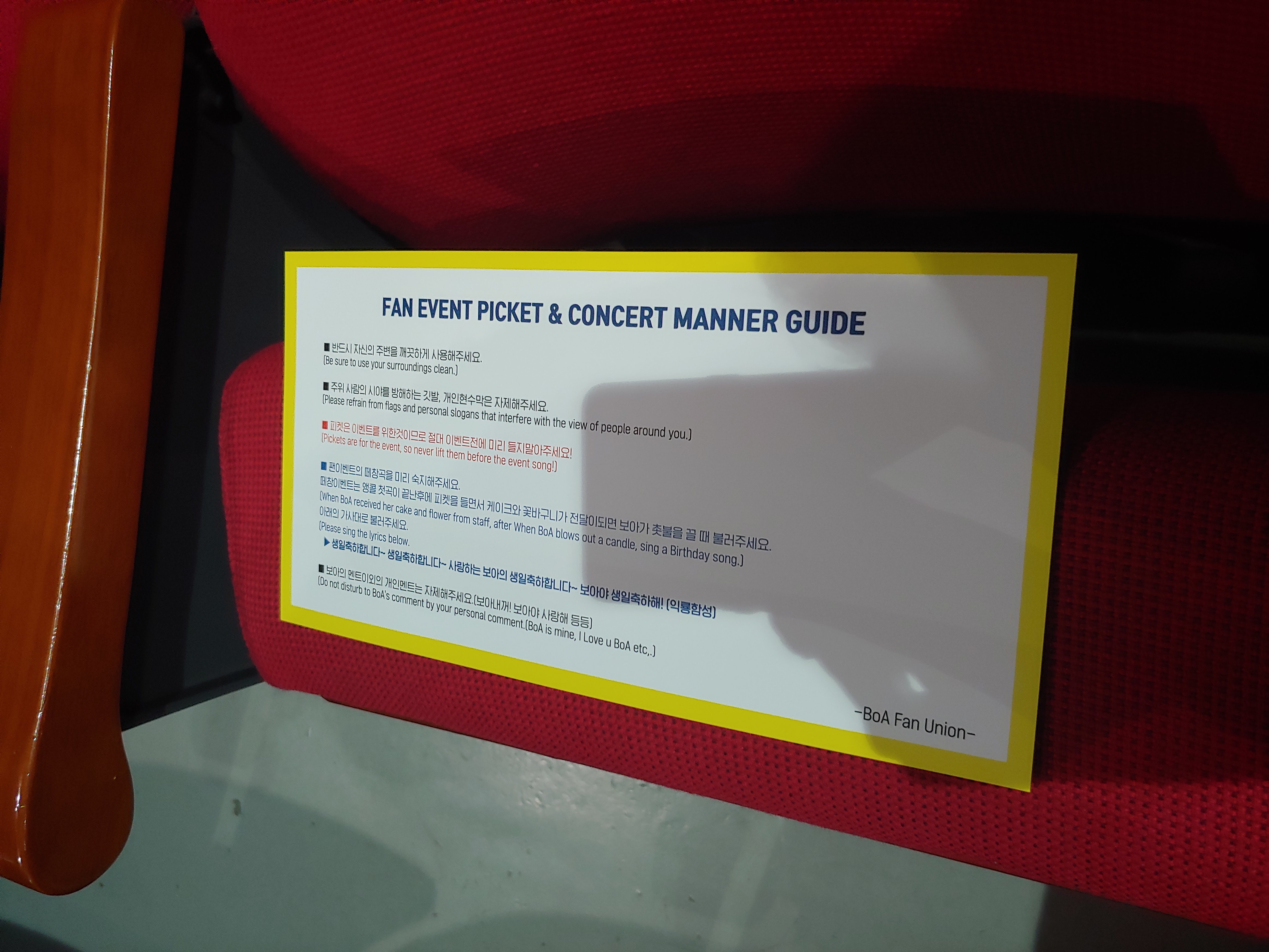 제가 앉을 좌석을 찾았더니 올해는 '너를 사랑할 수 있는 건 우리에겐 행운이었어'라는 슬로건을 건 피켓이 있었는데 이런건 점핑보아에서 준비하는거겠죠? 보아를 그렇게 좋아하면서도 점핑보아에 가입해본 적은 없어서. ㅎㅎ