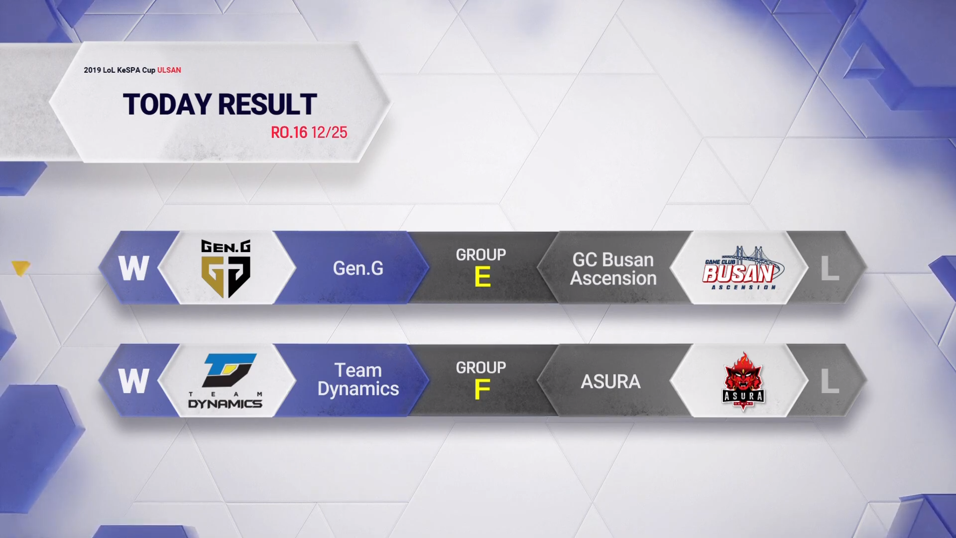 25일 크리스마스에 열린 매치는 그룹E 젠지 e스포츠 vs GC 부산 어센션은 젠지 2:0 승리, 그룹F 팀 다이나믹스 vs 아수라는 팀 다이나믹스 2:0 승리로 끝이 났습니다. 20분 컷-22분 컷을 보여준 젠지는 물론 팀 다이나믹스도 체급차이를 제대로 보여줬어요.