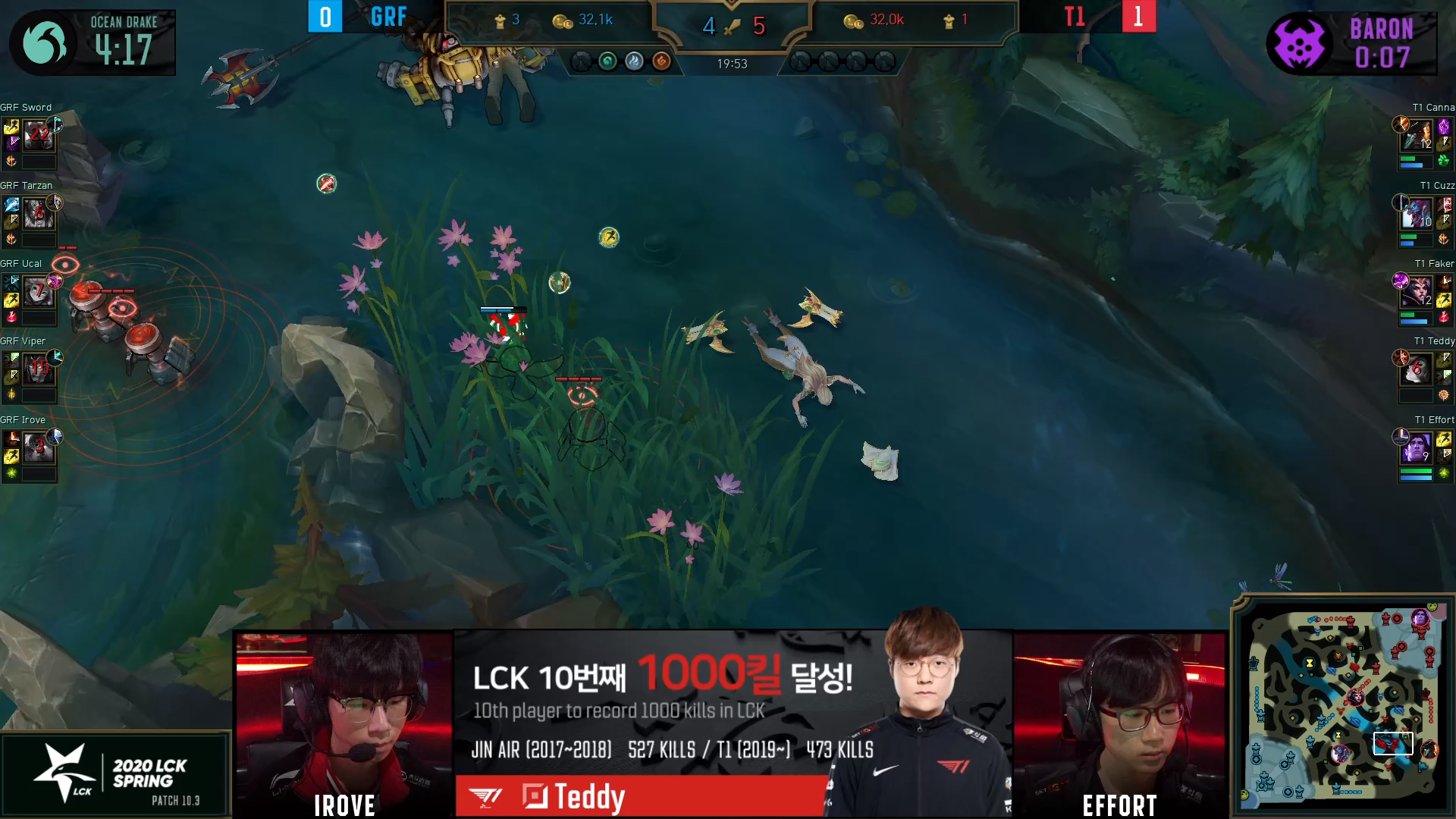 올 시즌 전 세계 원거리 딜러 중 압도적인 퍼포먼스를 보여주고 있는 T1 테디 선수가 LCK 10번째 1000킬의 주인공이 되었습니다. 2월 26일 2020 스프링 시즌 LCK 그리핀전 2경기에서 달성한 대기록이었고요. 소년가장처럼 정말로 어려운 시절도 있었지만 끝내 자신의 기량을 잃지 않고 이적해서는 무진장 잘나가고 있는 테디 선수 추카추카해요!