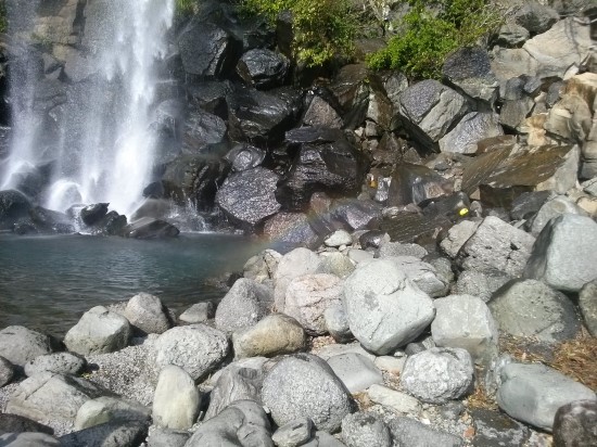 그리고 제주도에서 베스트컷 중 하나! 폭포 밑부분에서 무지개가 보였었는데 운 좋게도 사진으로 담을 수가 있었습니다. 사진 중앙에 예쁜 무지개~