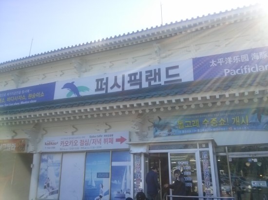 그렇게 도착한 퍼시픽랜드에서는 돌고래 수중쇼가 기다리고 있었습니다. 동물쇼를 실제로 본 게 도대체 언제가 마지막이었는지 기억도 안 나는데 이렇게 나이들어서 이런 곳에 오니까 신기했고, 지금의 내가 동물의 몸짓에 즐거움을 느낄 수 있을까?라는 의문까지 가졌었네요.