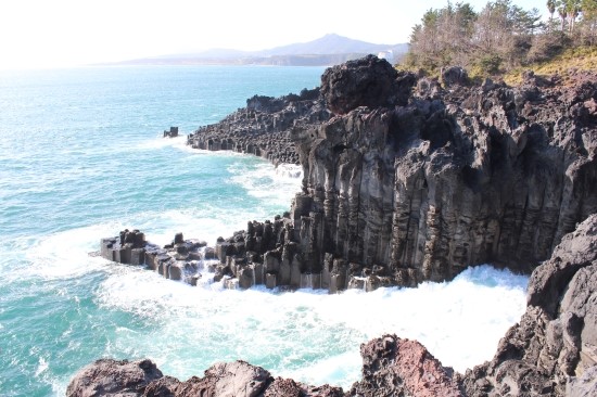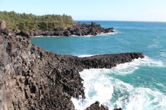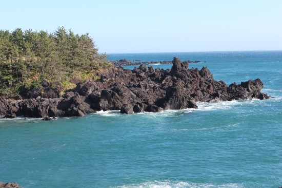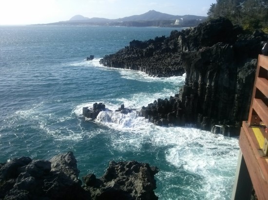 비록 쇠소깍에서 에메랄드빛은 볼 수 없었지만 이후 정방폭포 부근 풍경은 참 만족스러웠습니다. 확 트이는 느낌과 함께 제주도 바다를 체감했어요.