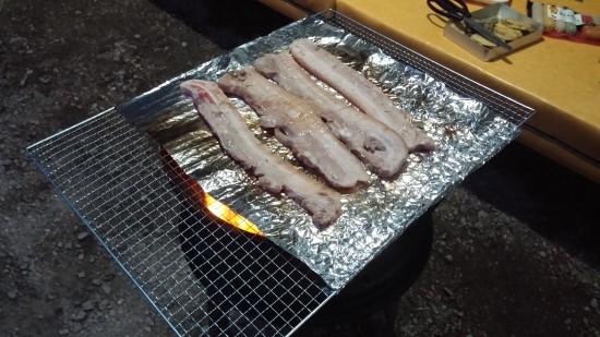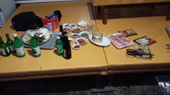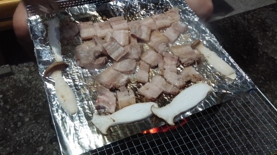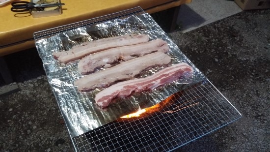 언제나처럼 마트에서 장을 본 후 숯불을 달궈서 그 위에 고기를 올렸습니다. 지금 봐도 침이 고이게 하는 탐스러운 사진이네요.