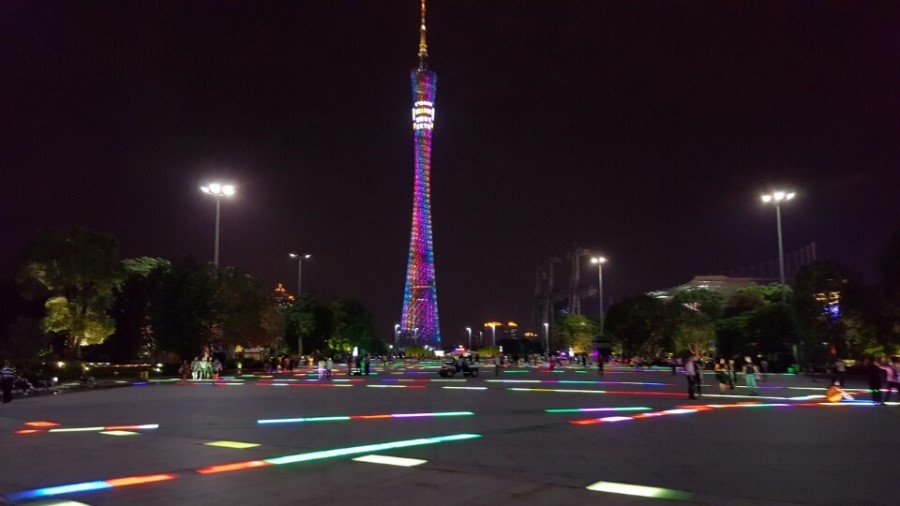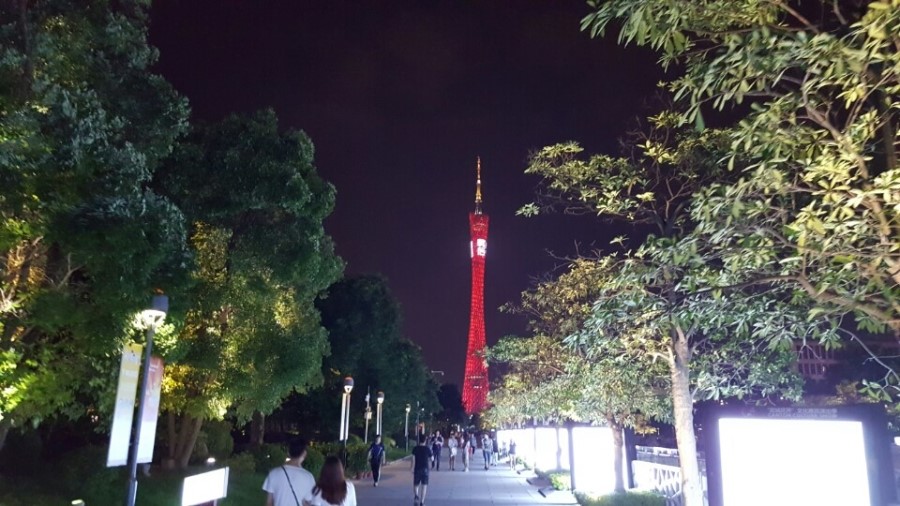 캔톤타워와 IFC타워, 그 밖에 높은 건물들이 우뚝 솟아있는 모습을 볼 수 있는 화청광장의 야경은 참 예뻤습니다. 밤에 돌아다니는 것을 안 좋아하는 저라 우리나라에서는 예쁜 야경이 있어도 볼 기회가 없는데 해외에서 이렇게 즐겼네요.