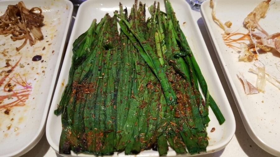 아직도 끝나지 않았어요. 중국식 가지요리는 맛있는거구나라고 느꼈던 가지, 어떻게 요리해도 맛있는 부추, 계란후라이와 양꼬치집 전용 양념(요리 아님) 사진들입니다. 여기에서 계란후라이는 간이 좀 짰어요.