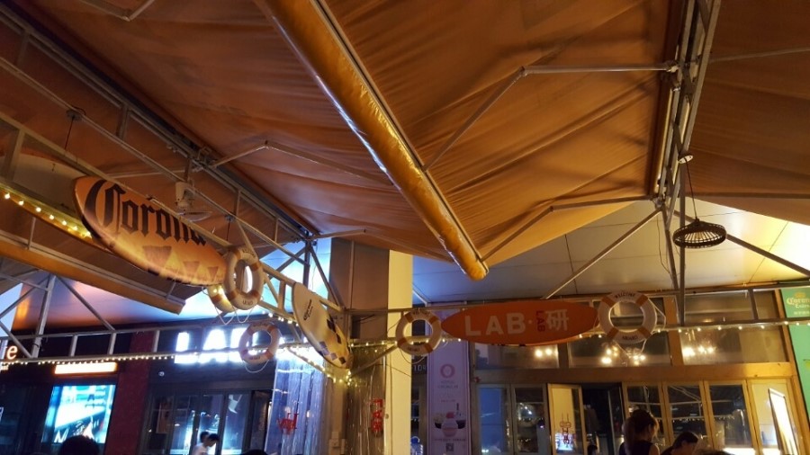 이후에는 원래 야시장이 목표였는데 아마 문 안 열었다고 했던가? 택시 타고 향한 이름 모를 곳입니다. 입구에서부터 주점이 주르륵 이어져 있고 서양식 느낌이 가득했어요. 그 중 한군데에서 오렌지 주스를 마시면서 든 생각, 광저우에서 미녀를 보려면 여기에 오면 되는구나!