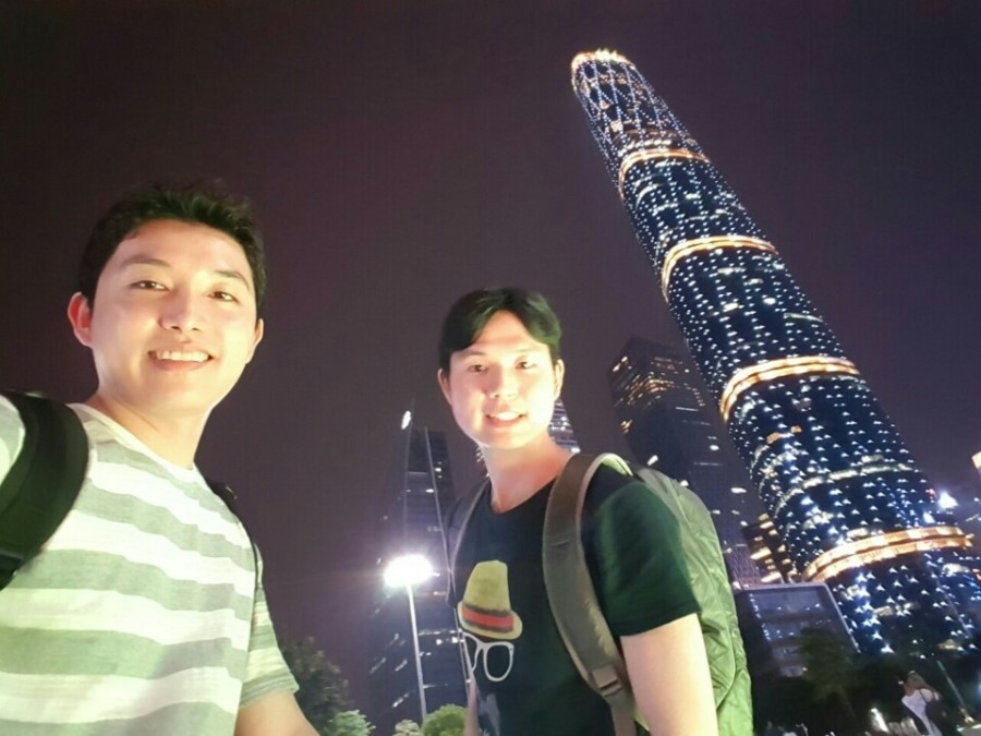 화청광장에서 야경을 바라보면서 걷는 것 빼곤 한게 없었지만, 그것만으로도 즐거웠던 우리들의 모습을 빠뜨릴 수 없었죠. 저 예쁜 광저우 화청광장의 야경 다시 한 번 보고 싶어요.