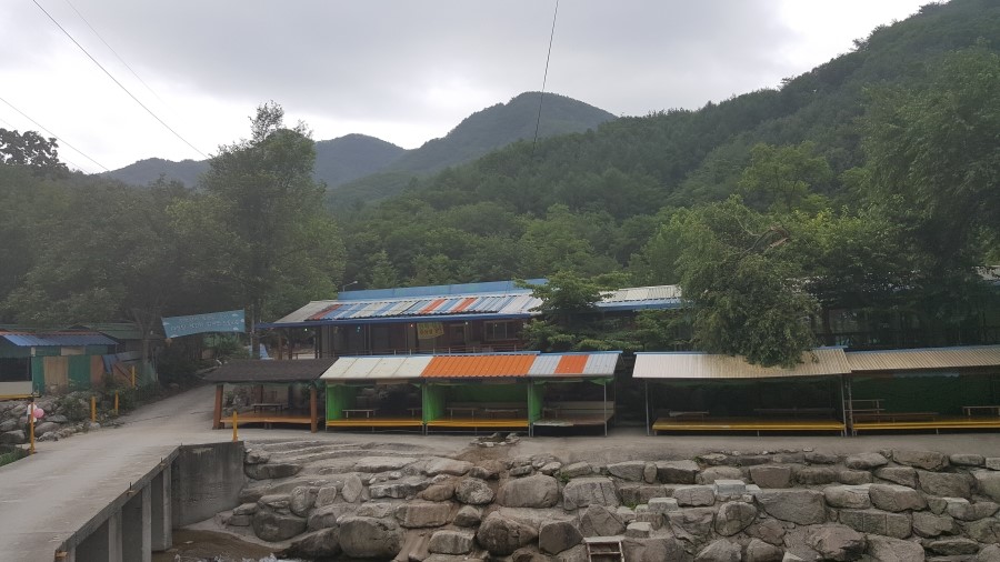 그리고 남겨보는 백운계곡 고향산천의 경치. 날씨가 흐려서 아쉽지만 산과 계곡물이 어우러지는 멋진 경치를 보면서 시골의 맑은 공기를 마실 수 있는 곳입니다. 매년 여름만 되면 찾고 싶은 곳이라죠.