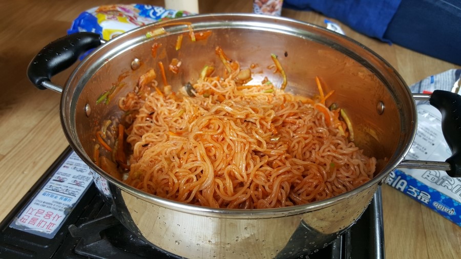 그렇게 다음 날 아침이 찾아왔을 때는 비빔면을 준비했습니다. 아침에 비빔면을 먹어본 건 처음인 것 같은데 꿀맛이더라고요. '아침에 먹는 비빔면은 맛있다' 메모