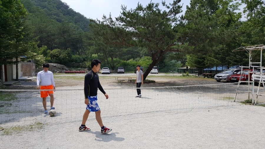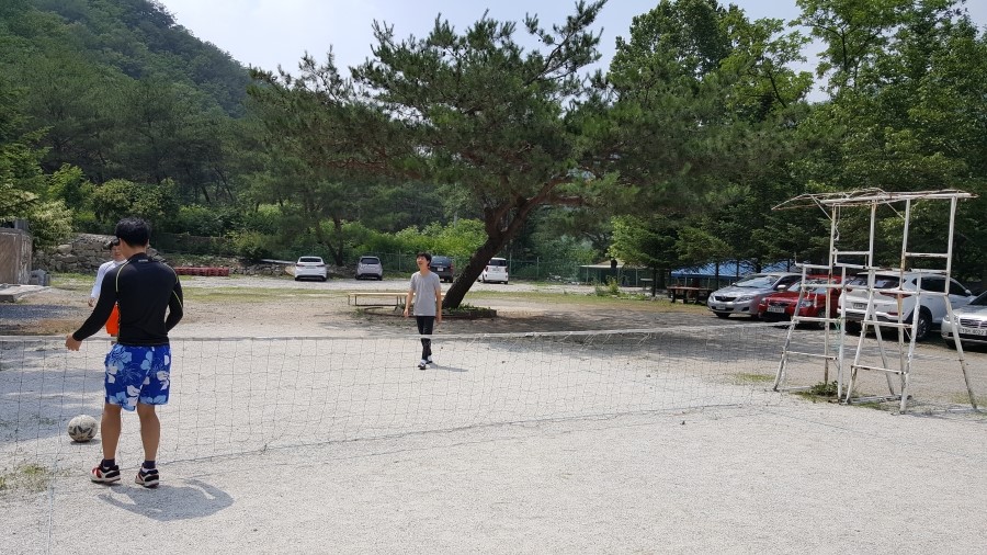 이 날 모인 진섭, 국환, 강철, 그리고 저까지 4인은 물에 들어가기 전에 족구를 먼저 하기로 했습니다.(고향산천에는 족구장이 있슴) 근데 다들 늙어서 체력도 안되고 실력도 녹슬고 세월의 무상함을 느끼게 한 일과였네요.