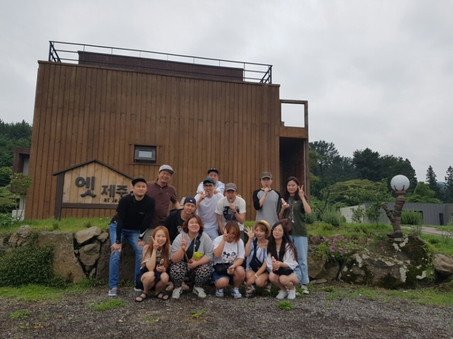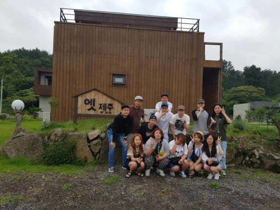 마지막날 공항으로 출발하기 전에 주인 아주머니께서 찍어주신다고 해서 이렇게 단체사진도 남길 수 있었습니다. 지금도 운영하시는지는 모르겠지만 엣제주 참 좋았어요~