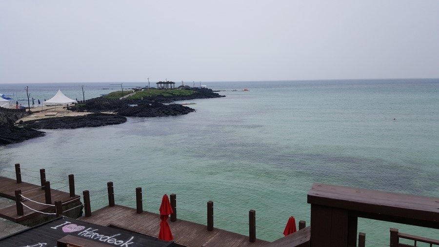 점심을 먹으러 도착한 식당 앞에서 봤던 탁 트인 경치는 역시 좋았습니다. 평소에 보기 힘든 바다 풍경을 제주도에서는 쉽게 볼 수 있는게 또 좋더라고요.
