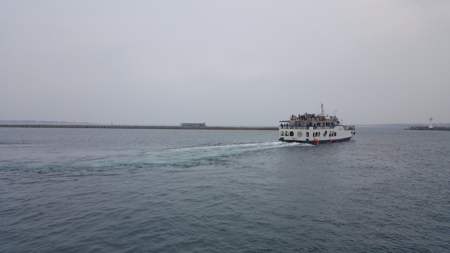 카페에서 보이는 멋진 바다 풍경을 바라보며 팥빙수를 먹은 후 우도로 가는 배를 탔습니다. 예전에 방문했을 때는 우도까지 가지는 않았는데 이번에는 처음으로 가면서 우도의 존재를 알았어요.