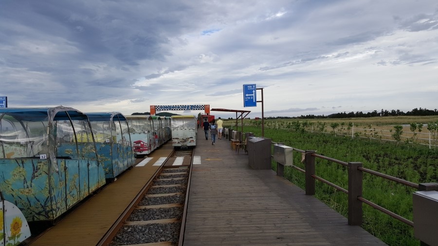레일바이크가 되게 느리긴 하지만 한편으로는 여유롭게 탈 수 있어서 타는 중에 사진도 마음껏 찍을 수 있고 좋더라고요. 그리고 제주도 바다가 아닌 넓은 들판 경치도 좋았습니다. 바람이 많이 불어서 좀 쌀쌀하긴 했지만.