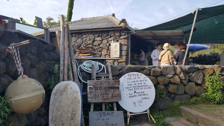 점심을 먹으러 도착한 식당 앞에서 봤던 탁 트인 경치는 역시 좋았습니다. 평소에 보기 힘든 바다 풍경을 제주도에서는 쉽게 볼 수 있는게 또 좋더라고요.