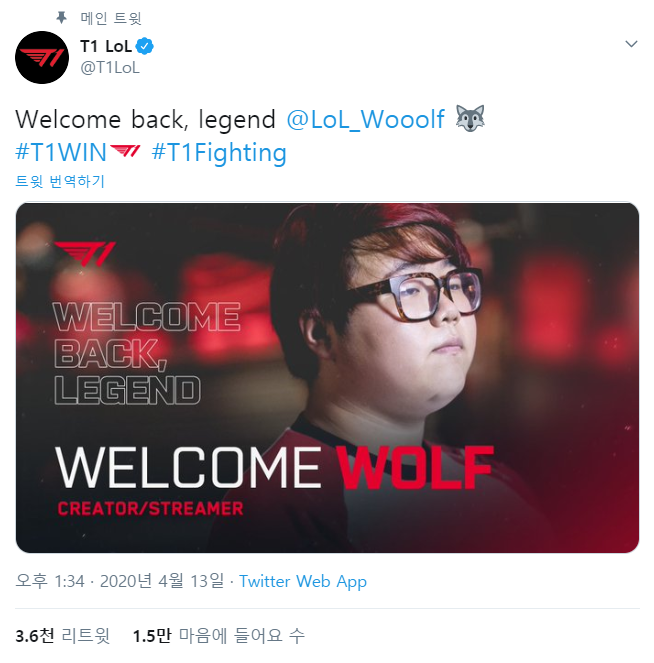 T1 레전드이자 은퇴 후 악성페까로 악명 높았던(?) 울프가 선수가 아닌 스트리머로서 친정팀에 돌아왔습니다. 많은 분들이 이 소식을 접하고는 기뻐하며 소식을 공유하는 것이 보기 좋네요.