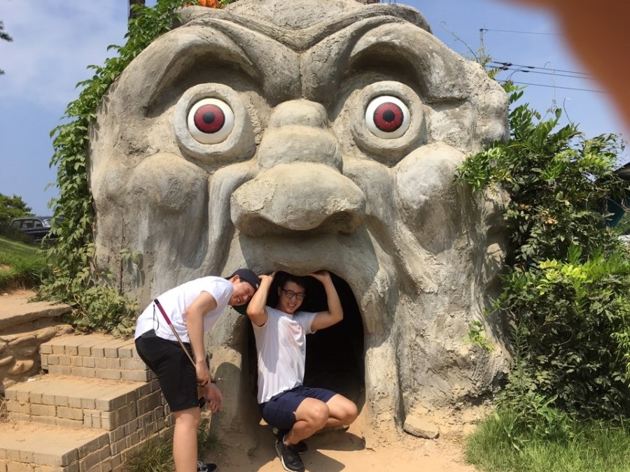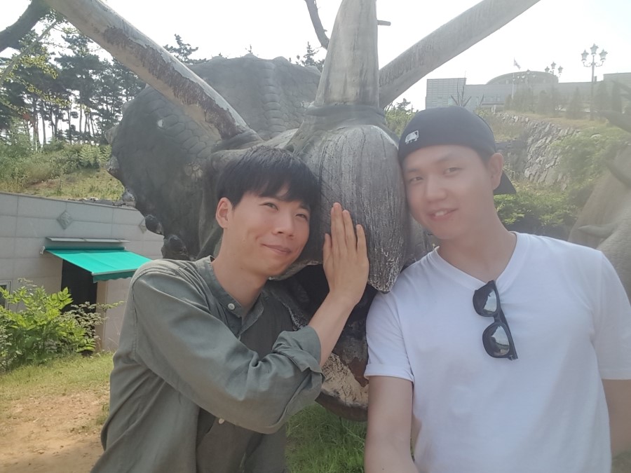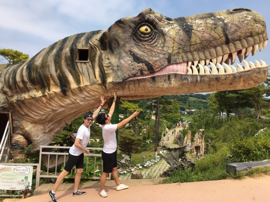 물론 공원에는 대형 공룡과 고래모형도 있어서 이렇게 재미있는 사진도 찍을 수 있었어요. 다시 봐도 진섭이의 표정으로 완성된 사진은 안면도 여행 사진 중 베스트입니다. ㅋㅋㅋ