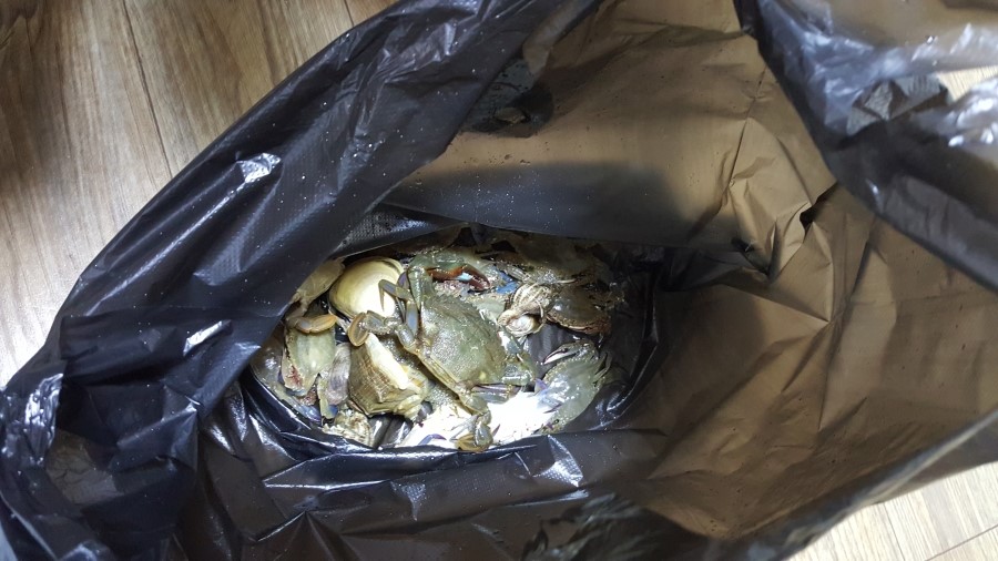 저녁식사 후 저와 진섭이는 잠자기, 강철이와 국환이만 해루질을 가서 이런 전리품을 가져왔습니다. 게가 어떻게 헤엄치는 줄은 몰랐었기 때문에 헤엄치는 모습을 생생하게 듣는 것도 재미있더라고요.