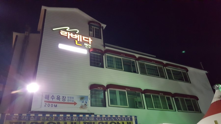 여행 전 친구들끼리 계획을 세울 때 게스트 하우스와 펜션으로 고민하는 것을 봤는데 최종 선택은 라벤다 펜션이었습니다. 이 때 처음 들어본 '해루질'이 가능한 펜션이고 저희가 도착한 날에는 밤 10시부터 예정되어 있었네요. 저희는 입실 시간 훨씬 전에 도착 후 내부 수영장에서 수영도 즐겼습니다.