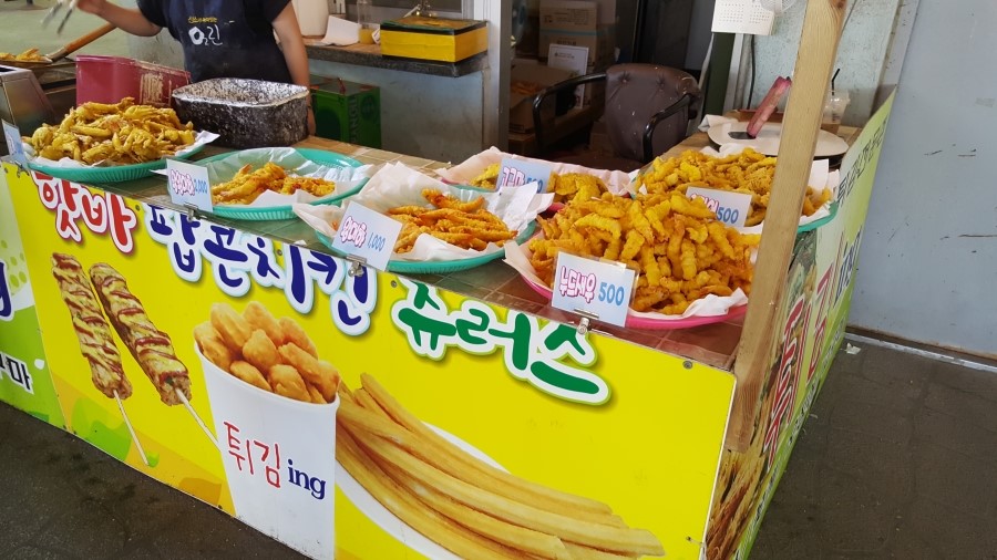 마트에서 장을 본 다음에는 회를 사기 위해 안면도 수산시장에 들렀습니다. 근데 회는 비싼 느낌이라 패스하고 게-새우튀김만 먹었는데 게튀김 그게 뭐가 맛있는건지 불평불평하면서 이후에 회는 다른 통합횟집(?)에서 우럭+광어 조합으로 샀습니다.