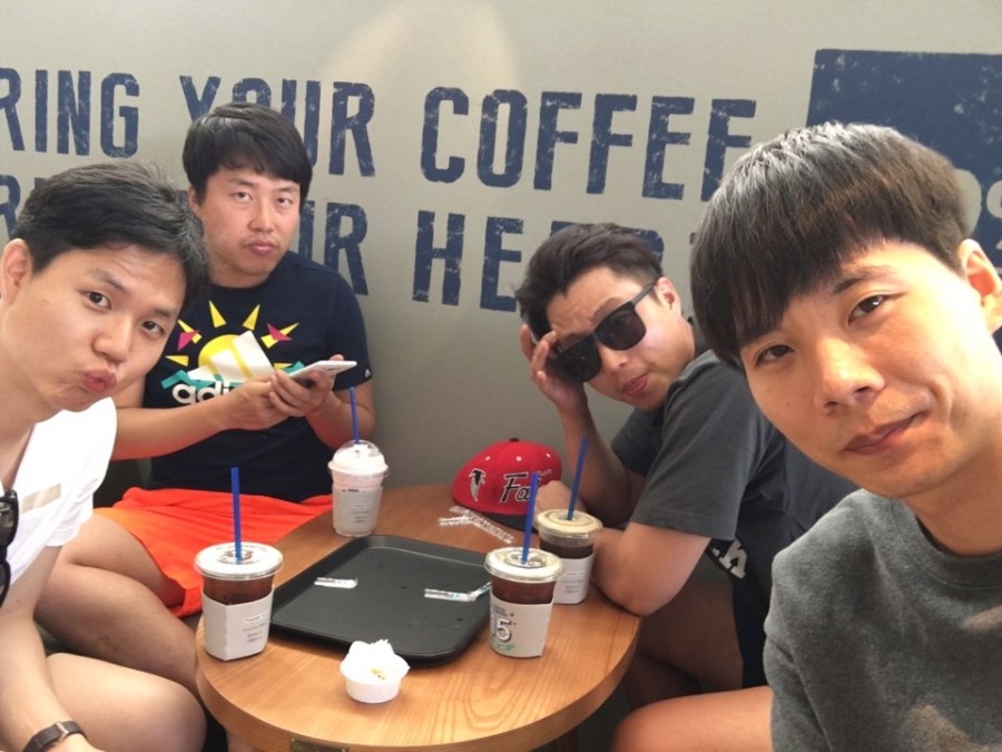 안면도 수산시장에 들렀다가 더위를 식힐겸 들렀던 이디야에서 중간거인 4인방 사진 한 장 찍어봤습니다. 더운날 시원한 아메리카노 한 잔이라 넘모 좋았고요~