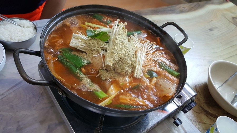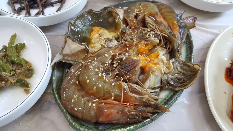 안면도 맛집을 검색해봤더니 꽃게 관련 요리가 유명하더라고요. 나름 근처에 있던 꽃게집 시골밥상을 찾아서 이름도 처음 들어본 게국지+양념게장+간장새우-게장 4인 세트를 먹었습니다. 처음 먹어본 게국지는 얼큰함이 너무 좋더라고요~