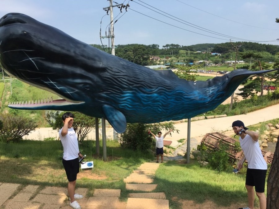 물론 공원에는 대형 공룡과 고래모형도 있어서 이렇게 재미있는 사진도 찍을 수 있었어요. 다시 봐도 진섭이의 표정으로 완성된 사진은 안면도 여행 사진 중 베스트입니다. ㅋㅋㅋ