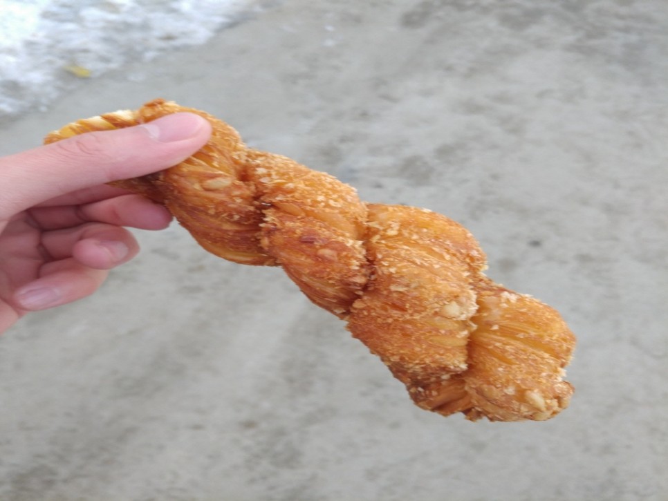 길가다 보니까 대왕꽈배기와 회오리감자가 눈에 들어오더라고요. 그 중에서 대왕꽈배기를 한 번 먹어보자 했는데 이거 존맛이었습니다. 흔한 말랑 꽈배기가 아니라 껍질이 바삭한 꽈배기라니 너무 좋았고 또 먹고싶네요.