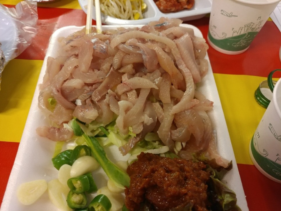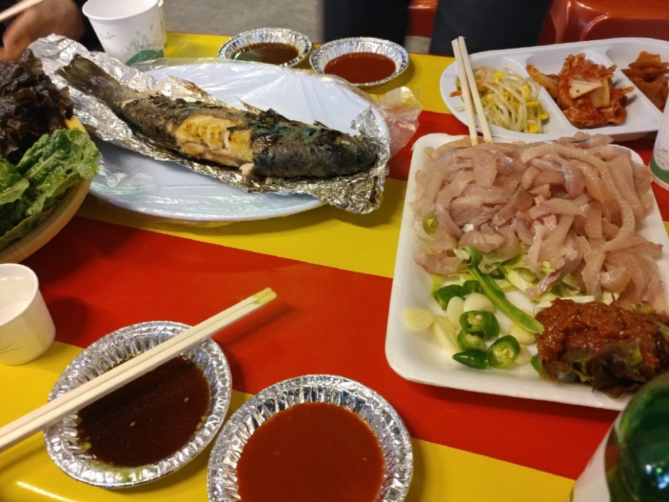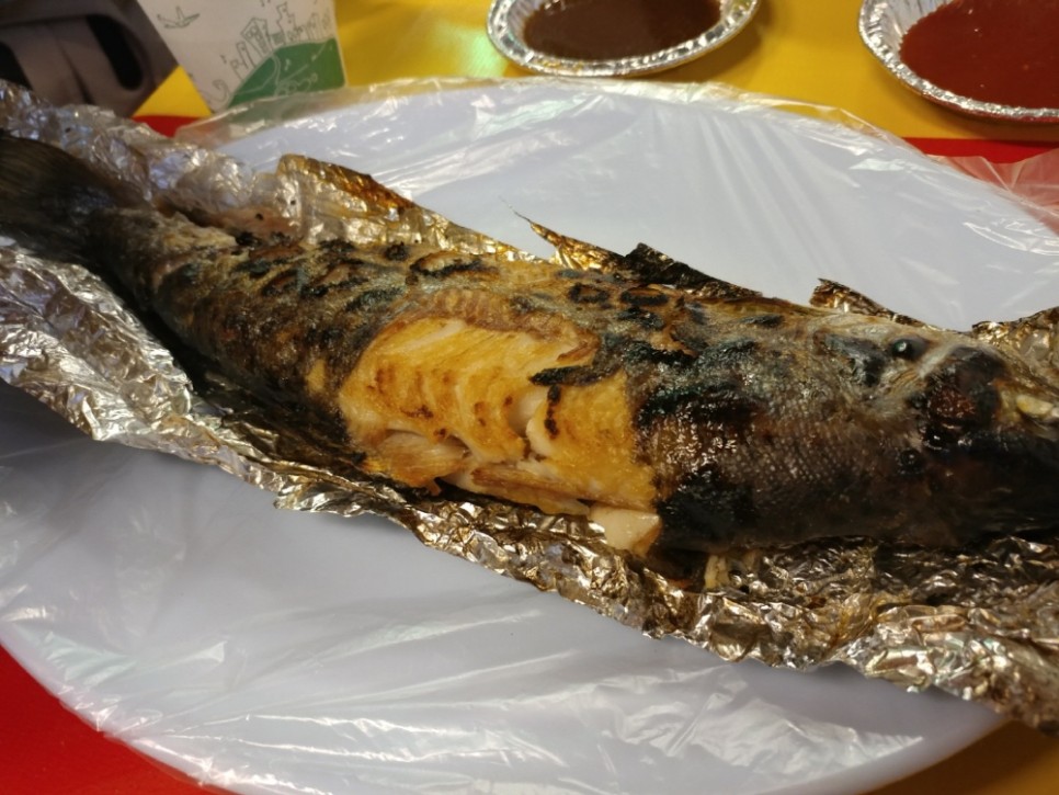 본격적인 먹거리로는 산천어회와 산천어구이가 있어서 먹어보기로 했습니다. 산천어회는 쏘쏘했는데 산천어구이가 역시 제 입맛에는 맞지 않았어요. 고등어구이 짱
