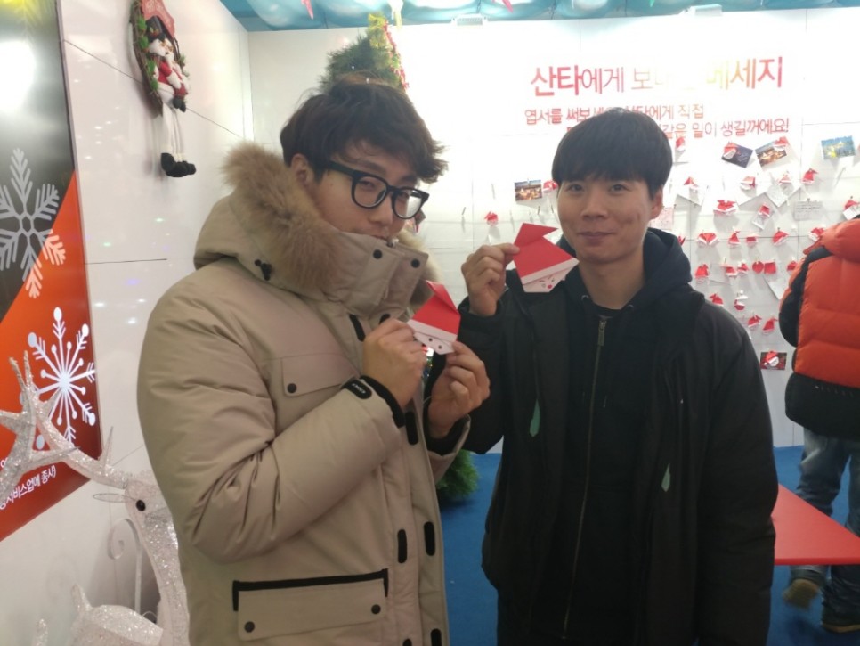 누구나 산타 얼굴을 만들어 볼 수 있도록 준비되어 있었고, 각각 국환이와 강철이만 자신만의 서타일로 산타를 만들어봤습니다. 귀염귀염