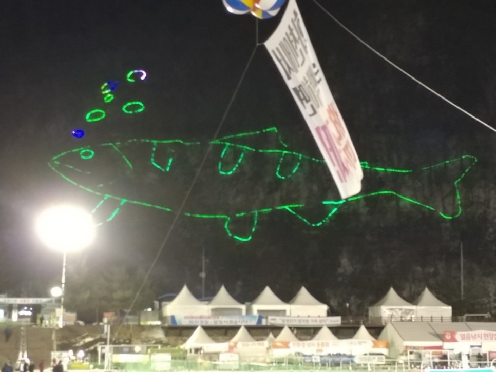 하늘이 어두워졌을 때 산천어축제 장소는 또 다른 분위기로 좋았습니다. 정말 많은 분들이 이 축제를 준비하기 위해 고생하셨을 것 같다는 생각도 드네요.