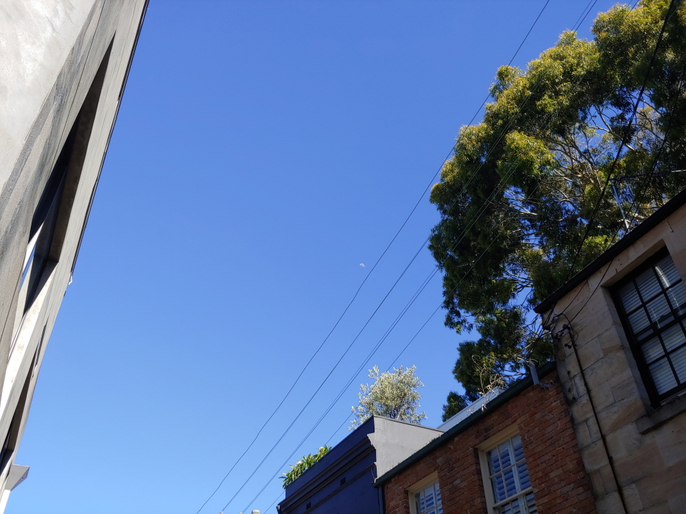 아침에 길을 나서기 위해 숙소에서 나왔는데 하늘 위에 쪼꼬맣게 달이 떠있더라고요. 구름 한 점 없는 맑은 날씨의 아침에 보는 달은 또 다른 느낌으로 좋았습니다.