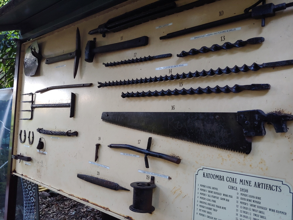 블루마운틴은 석탄을 캐는 장소이기도 했었나봐요. 광부들이 실제로 사용했을 법한 장비가 이렇게 있는데 정말 종류가 다양한 것 같아요. 아무것도 모르는 저는 석탄을 열심히 때리면서 캘 때 사용하는 곡괭이 같은 장비 밖에 몰랐는데 말이죠.