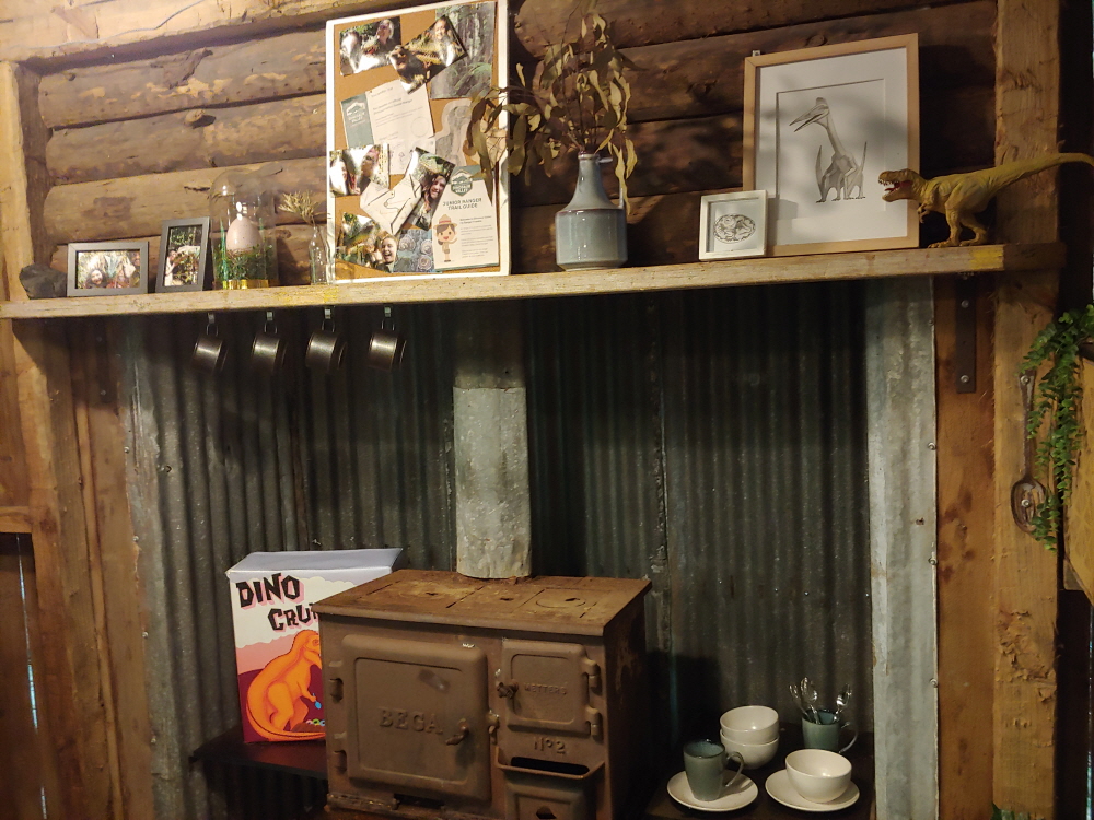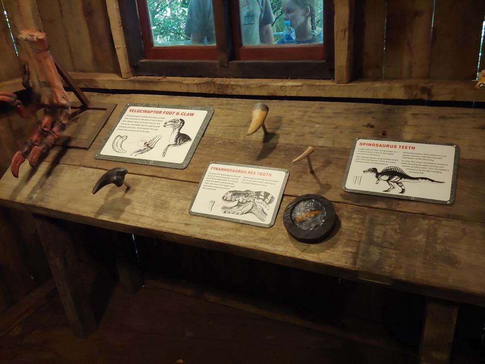 중간에 탐험가들이 사용했을 법한 별장 같은 느낌의 집이 있었는데 여기는 진짜 디테일하게 꾸며놨더라고요. 제가 탐험가들이 사용한 방을 실제로 본 적은 없지만 진짜 이랬을 것 같다 하는 느낌이 들게 꾸며 놨습니다. (공룡과 인간이 공존했던 시기는 없었다지만) 공룡 부위에 대한 설명도 친절하게 있었고요.
