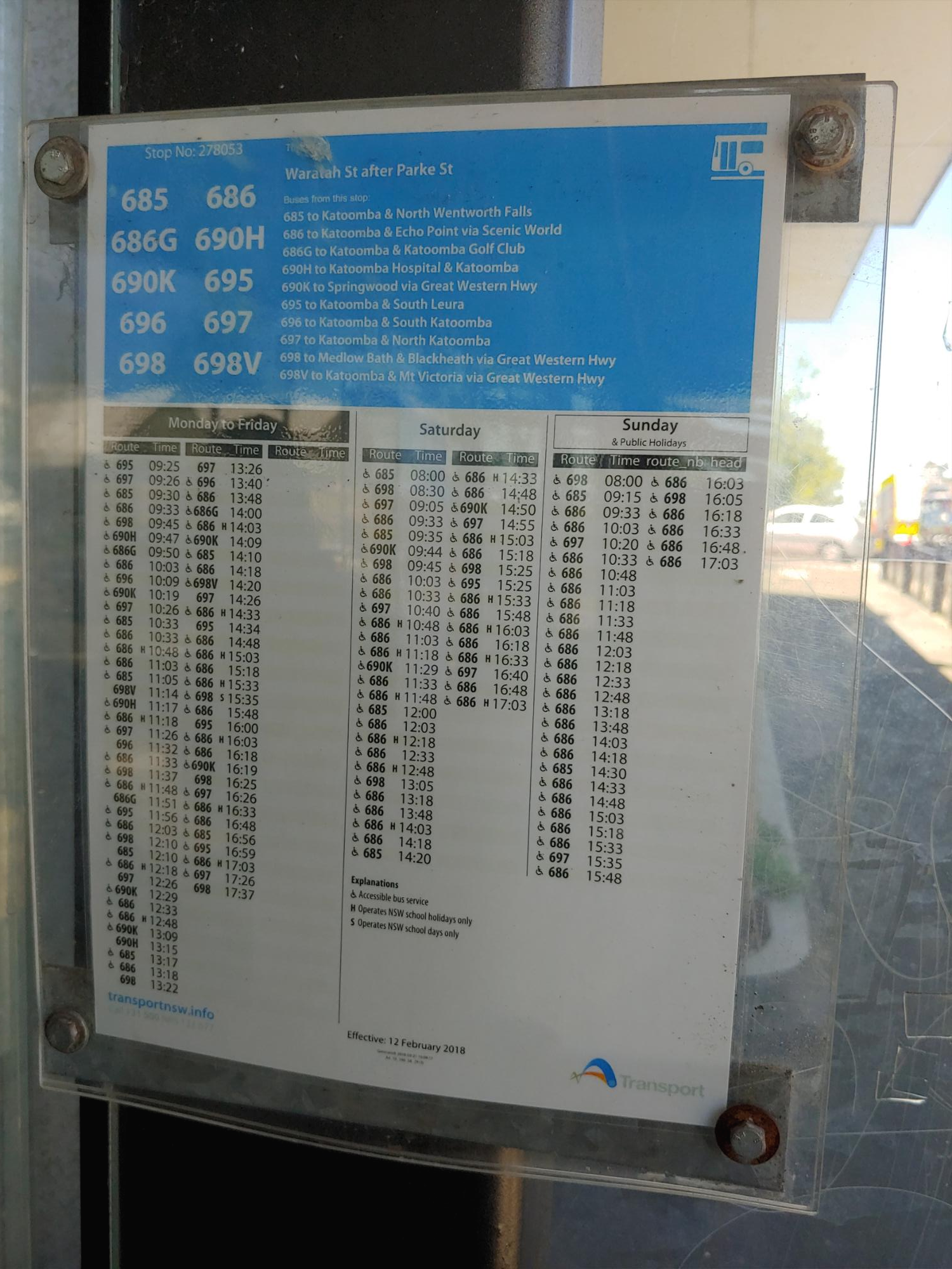 카툼바역에서 블루마운틴까지 버스시간표가 있어서 한번 찍어봤습니다. 버스가 많지 않아서인지 사람이 꽉꽉 차서 탈 수가 없더라고요. -_- 2번인가 그냥 보내고 우버 타고 갔습니다. 버스 기다리는건 시간낭비가 될 수 있으니 우버 추천!