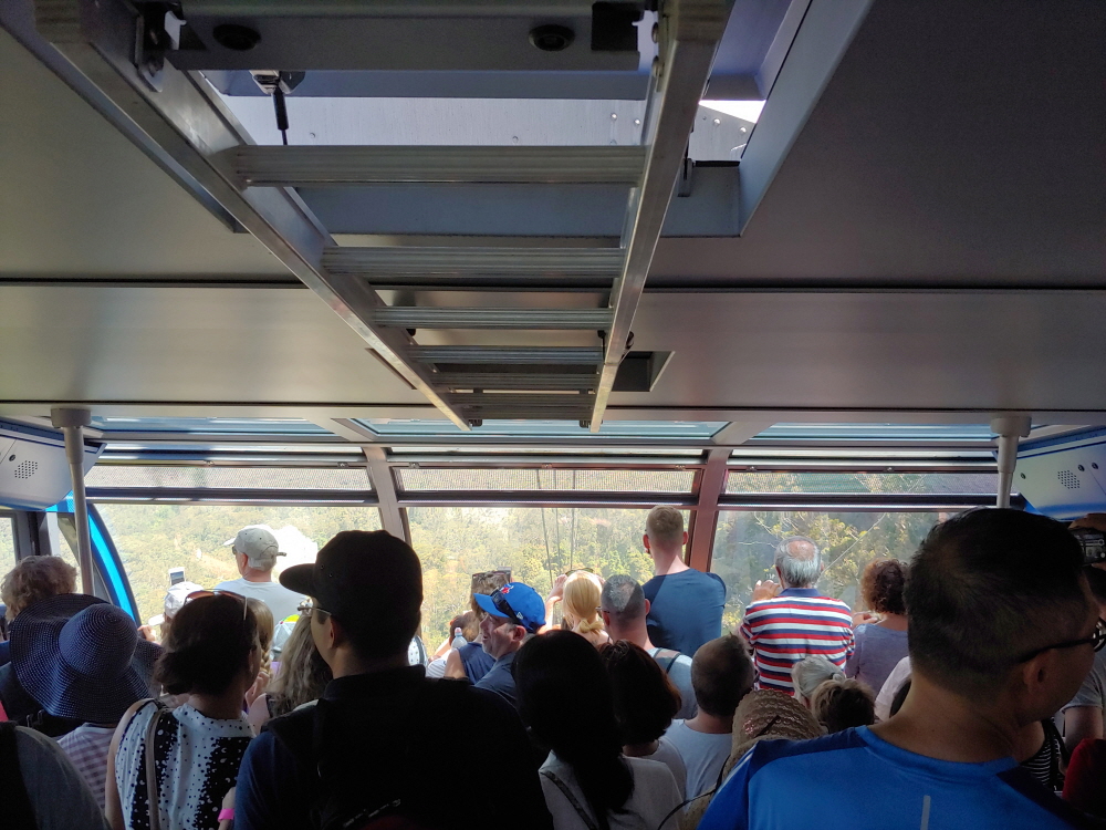 꽤 오랜 기다림 끝에 저희들 차례에 케이블카를 타고 이동하는 중입니다. 정말 많은 사람들이 탈 수 있는 초대형 케이블카라는 생각이 들었어요. 안에서 가이드분께서 여러 가지 설명해주시지만 저는 하나도 못 알아들으니 조금 슬픔.