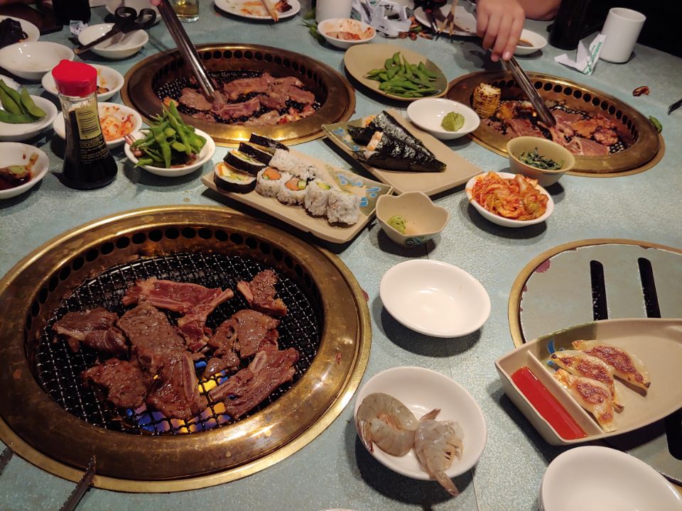 저녁식사 장소는 샤부센이라는 식당이었고, 불고기와 초밥, 다양한 메뉴를 무려 무한리필로 먹을 수 있는 곳이었습니다. 메뉴가 나오기까지 시간이 엄청 오래걸리기는 했어도 진짜 맛있게 먹을 수 있었네요.
