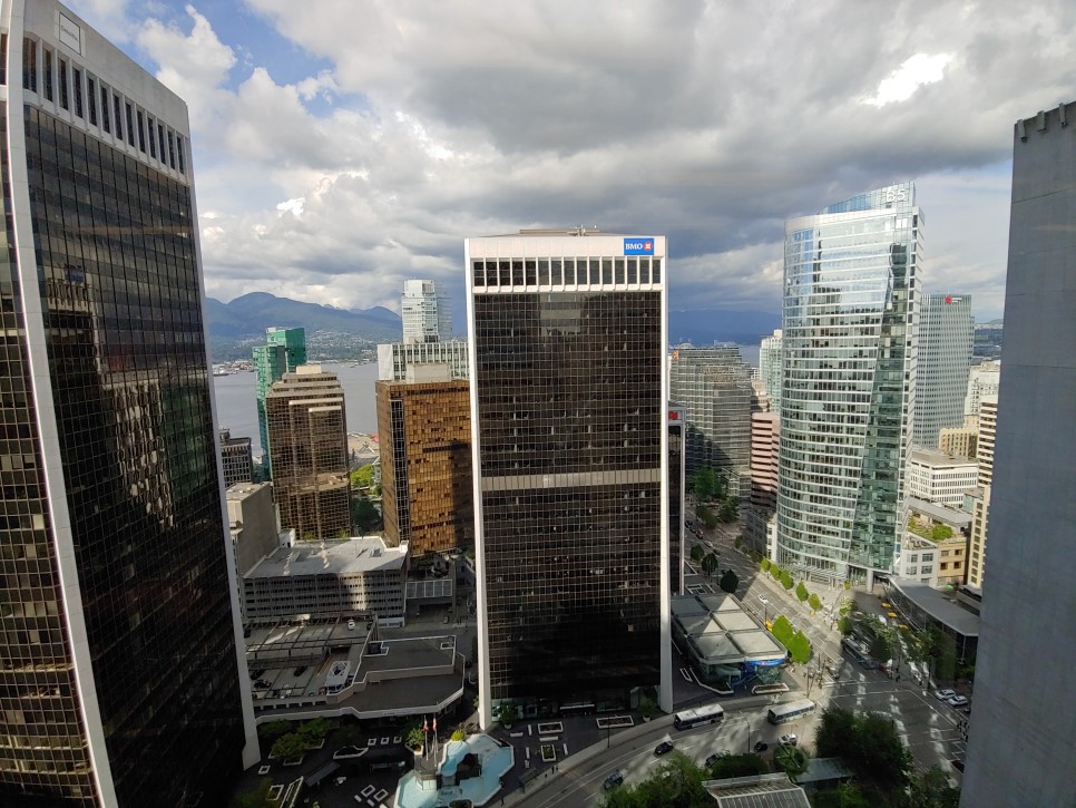 몇 층이었는지는 기억나지 않지만 EYEXPO 사무실에서 바라보는 밴쿠버 시내가 눈에 들어와서 사진을 남겼습니다. 이런 멋진 풍경의 사무실을 가지면 어떤 느낌일까?라는 생각도 해봤고요.