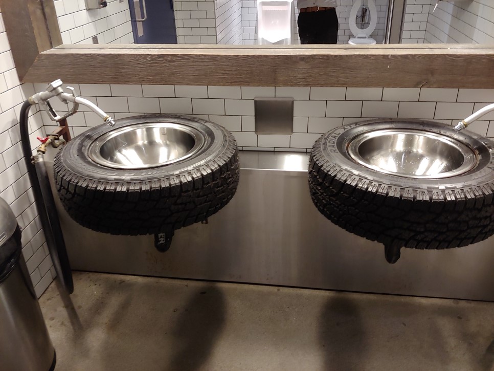 Red Truck이라는 이름답게 화장실에서도 재미있는 인테리어를 볼 수 있었습니다. 진짜 깔끔하게 관리된 화장실 느낌이었고, 이런 아이디어에 감탄하면서 사진을 남겼어요.