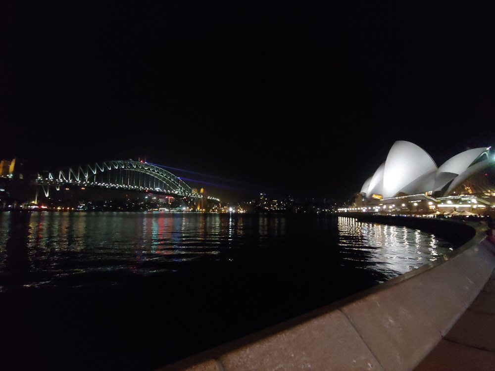 정말 좋았던 순간을 뒤로 하고 이제는 숙소로 돌아갈 시간. 오페라하우스와 하버브릿지를 사진 한 장으로 담아보고 싶다는 생각으로 찍어봤습니다. 이렇게 보니까 더 멋진 야경 같아요. 호주 시드니 야경 만세!