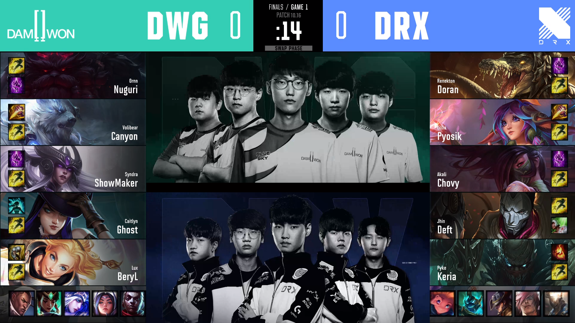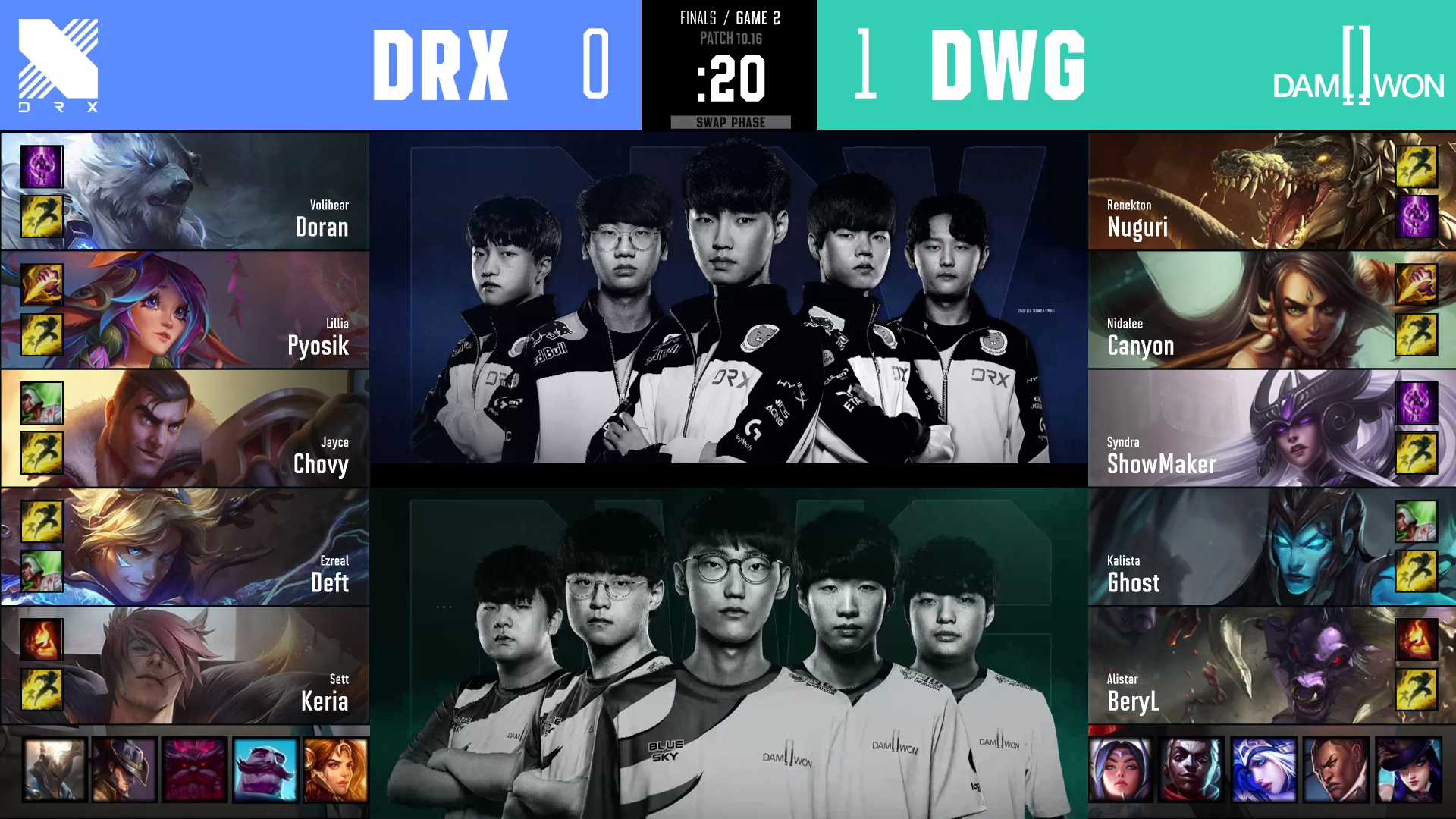2020 LCK 서머 시즌내내 폭발적인 경기력을 보여줬고, 실제로 씹어먹는 지표를 쌓아나간 담원과 시즌 후반에 많이 흔들리긴 했지만 무력 최강 쵸비를 앞세워 젠지를 꺾은 DRX의 대결이었던 결승전이었습니다. 저 역시 담원의 승리를 예상했지만 그래도 젠지를 이긴 DRX라면 조금이라도 보여줄게 있지않을까? 하는 기대는 있었어요.