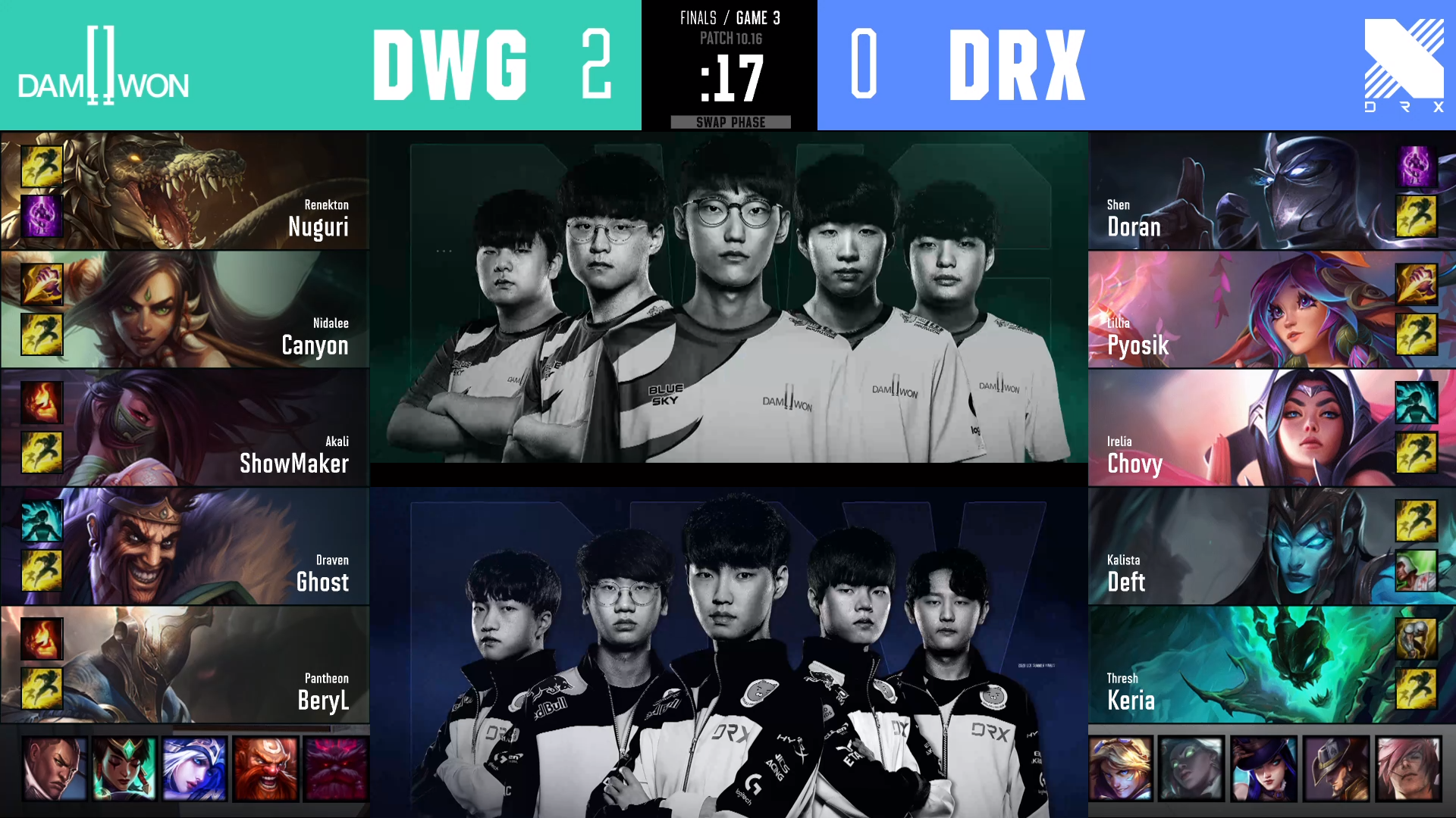 3세트는 양 팀 모두 비장의 무기를 꺼내든 느낌이었습니다. 장인픽 드레이븐의 고스트와 서폿 판테온의 베릴, 쵸비의 미드 이렐리아와 도란의 탑 쉔이 중요한 한 판이었어요.