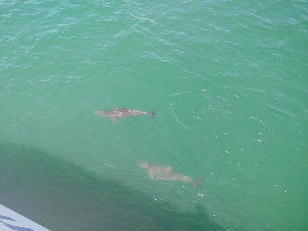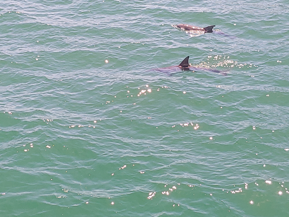 뭐 어쨌든 배를 타고 열심히 돌아다니다가...바로 저희의 목적을 달성하는 순간! 돌고래였습니다. 바로 이 돌고래를 보기 위해 배를 타고 열심히 돌아다니는 것이었는데요, 한참 동안 발견하지 못해 다들 그대로 돌아가나보다라고 포기하고 있을 때 나타나더라고요. 이 귀여운 돌고래 녀석들.