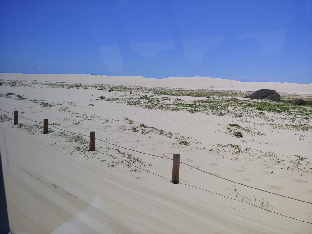 저는 패키지 내용도 한 개도 모르고 있었으니까 다음은 어딜까 했는데 눈 앞에 이런 광경이 펼쳐졌습니다. 여기가 정확하게 사막인지 사막이랑 비슷한 곳인지는 모르겠는데 어쨌든 눈에 보이는 이 느낌이요. 포스팅 중에 검색해보니까 여기는 포트스테판(Port Stephens)으로 사막보다는 큰 모래 언덕이라고 해요.