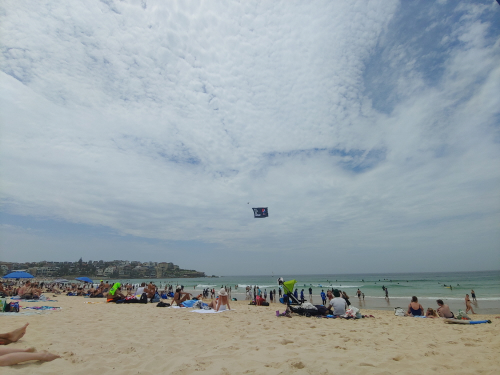 본다이비치의 해변은 참 평화로웠습니다. 사실 본다이비치라서 특별하다고 느낀건 서양인들이 해변에 많구나, 모래가 참 보드랍고 쓰레기가 없어서 좋구나, 적절한 파도 덕분에 서핑하기에 참 좋구나 밖에 없긴한데 매력적인 곳이니까 많은 사람들이 여기를 찾는거겠죠? 사진에서 보이듯이 하늘도 맑고 경치가 좋은건 분명했고요.