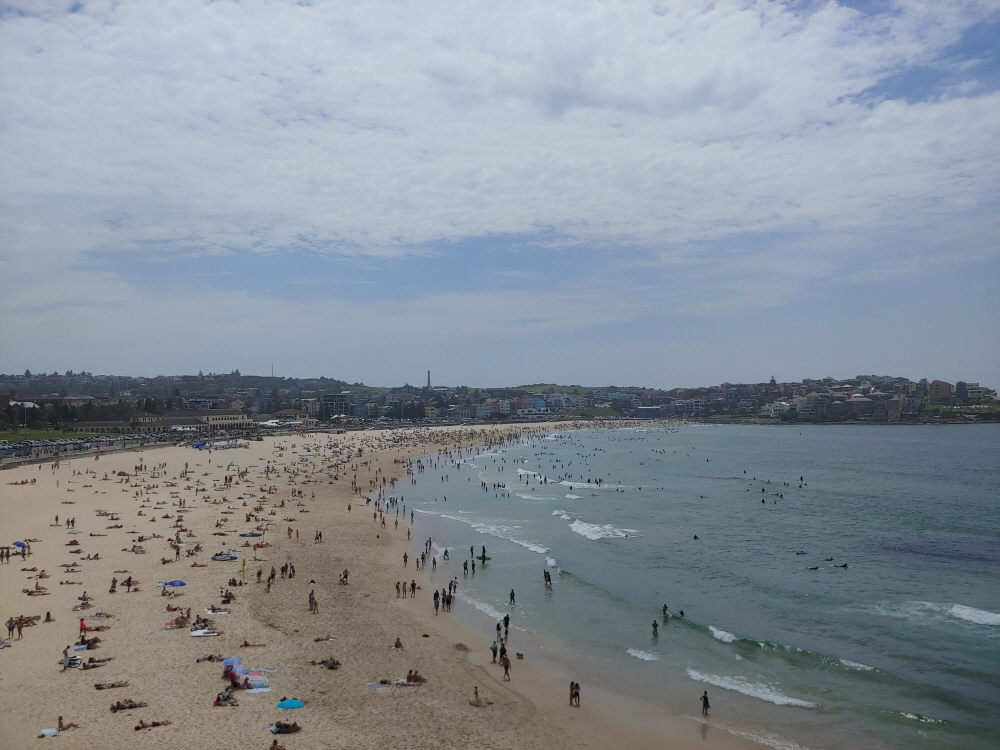 열심히 전철을 타고, 버스를 타고 하면서 오전에 도착한 곳은 호주 시드니에서 유명한 해변 본다이비치(Bondi Beach)입니다. 검색해보니까 많은 관광객이 크리스마스 휴가를 보내러 오는 해변이라고도 하네요.