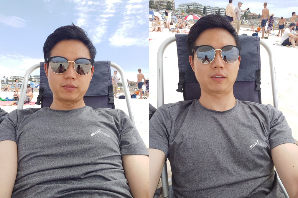 바다에 들어가서 즐기기 전에는 이렇게 아재다운 셀카도 찍어봤습니다. 선글라스 끼고 찍으니까 더 멋있어 보이는줄 알았는데 안 멋있어서 좀 실망도 했고. 어쨌든 처음으로 타 본 서핑보드는 너무 재미있었어요. 아주 잠깐 동안 일어서서 타는 동안 느꼈던 기분은 진짜 최고!