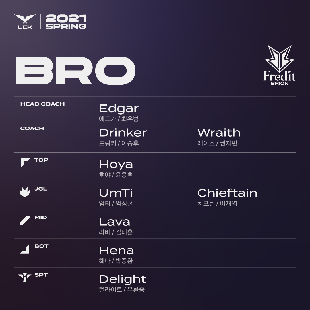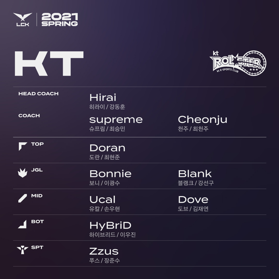 스프링에 참여하는 10개팀의 로스터는 이렇게 결정되었습니다. 개인적으로는 한화생명에서 캐드, KT에서 기드온을 1군 로스터에서 제외한 것이 눈에 띄네요. 특히 케스파컵에서 캐리하던 기드온이 인상적이었어서 쪼꼼 아쉬워요. 삼성 갤럭시 팬이라 궁금했던 레이스가 프레딧에서 코치로 나서는 것도 확인해서 다행입니다.
