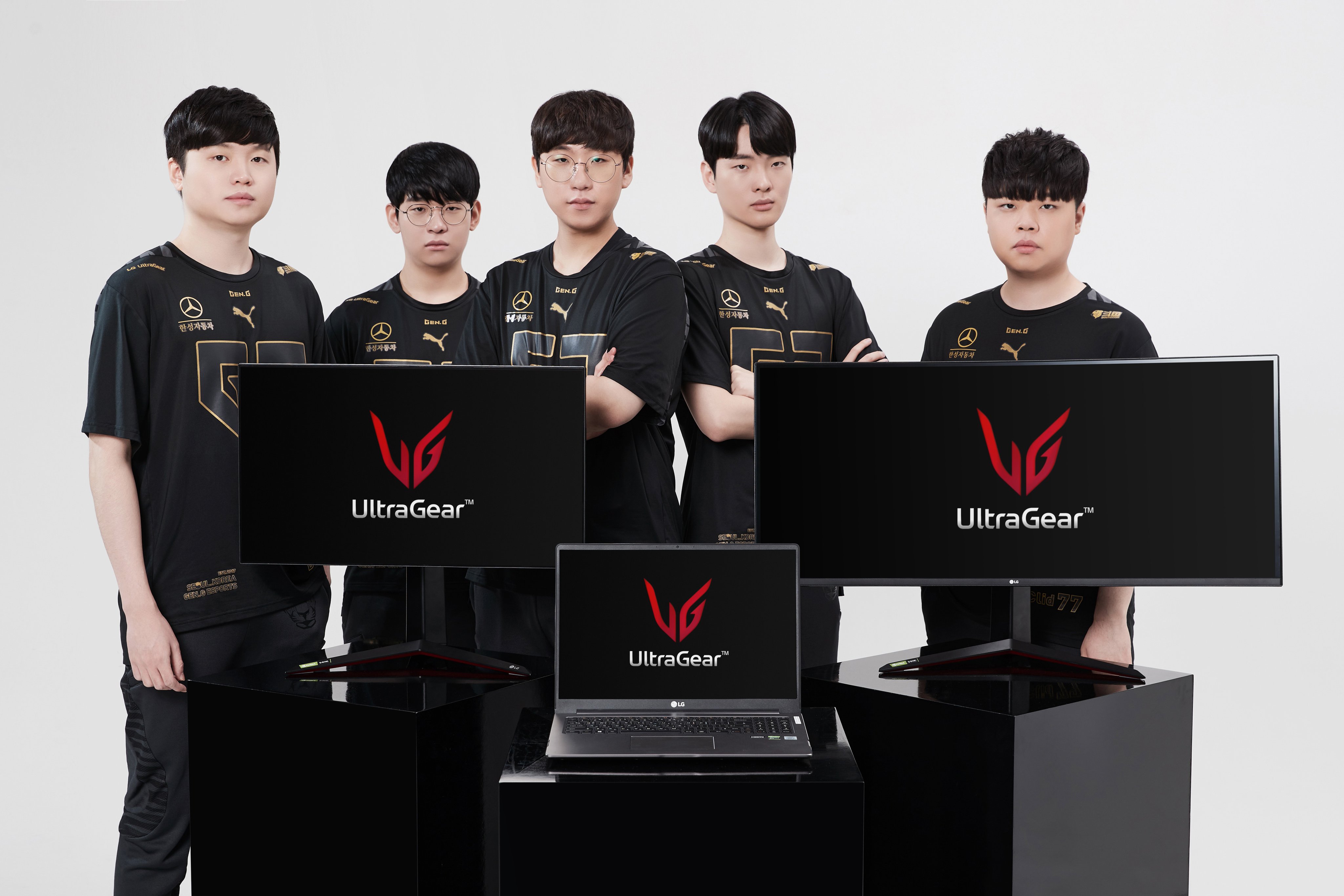 2021 시즌 젠지 유니폼은 LG전자 게이밍 모니터 파트너십 사진이라 거의다 가려졌지만^^; 역시 바뀐 것이 눈에 띕니다. 원래는 검정 바탕에 흰색 로고였는데 이번 시즌에는 금색 테두리를 두른 검정색 젠지 로고와 금색 파트너십 로고들로 바뀌었어요. 전 시즌 유니폼이 더 제 취향이지만 이것도 나쁘지 않아요.